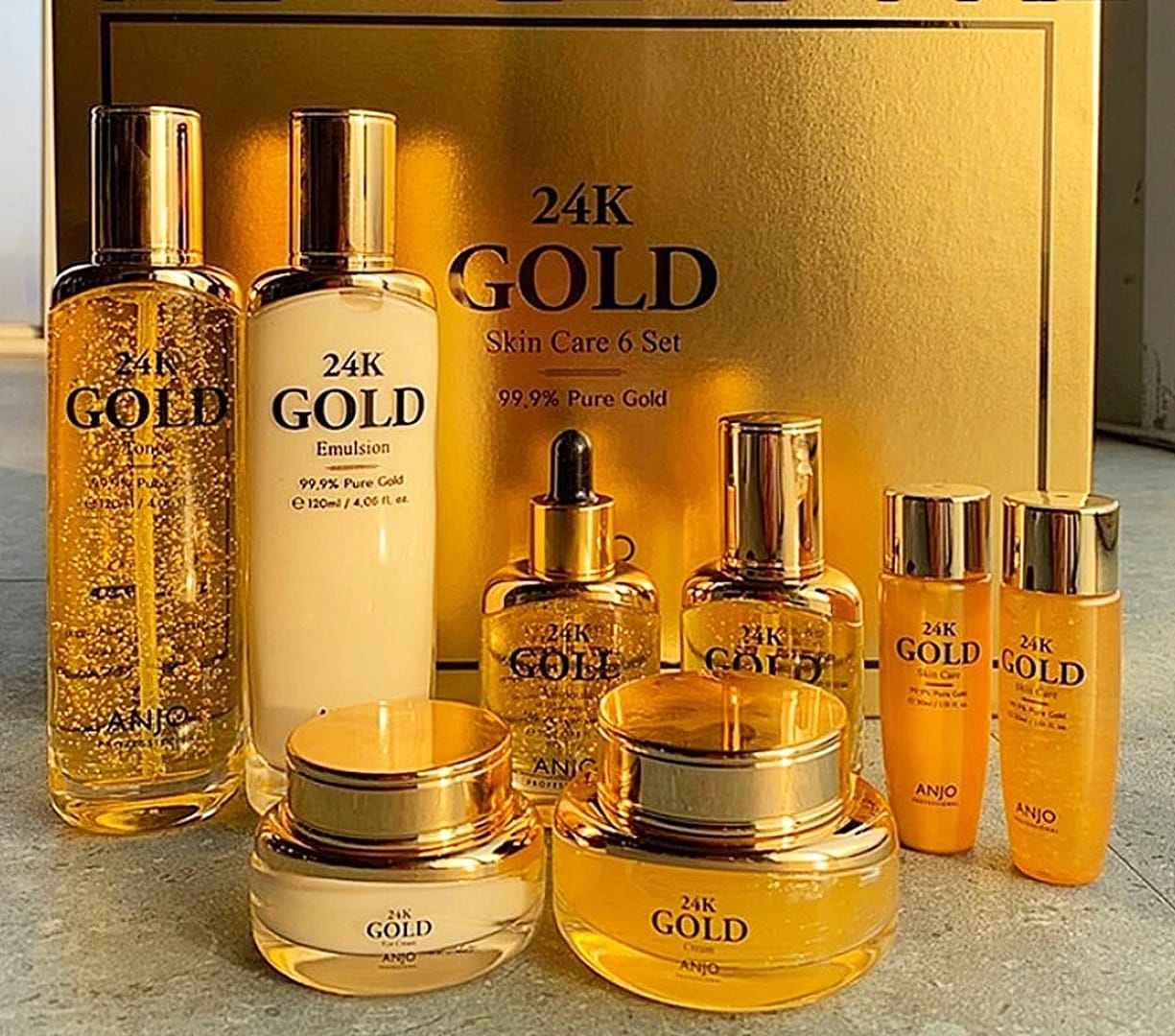 ANJO Skin Care 24K 1set 6+2 Toner 120ml, Emulsion 120ml, Essence 35ml, Cream 50g, Eye Cream 30g, Ampoule 35ml + Portable (Toner, Emulsion)