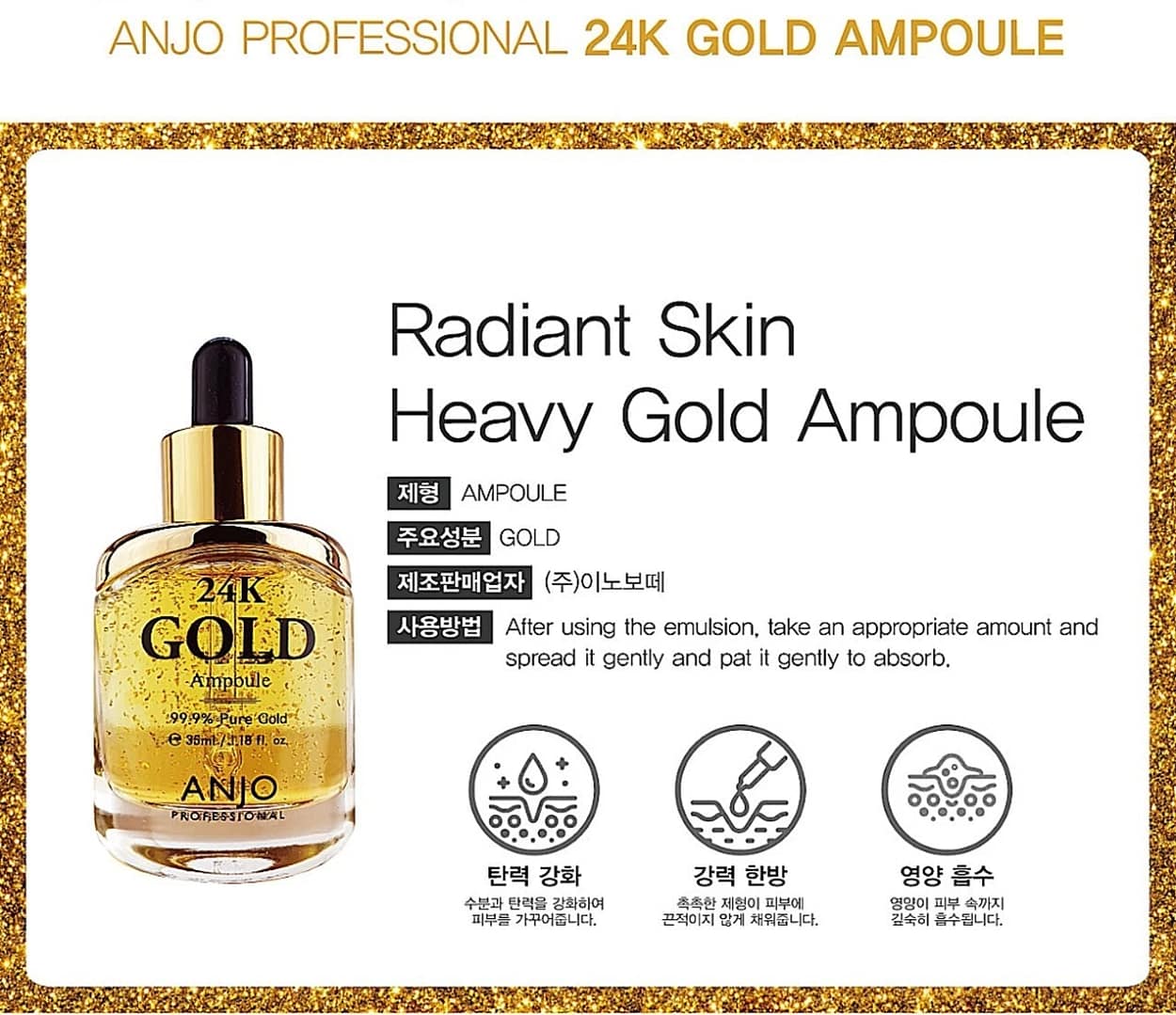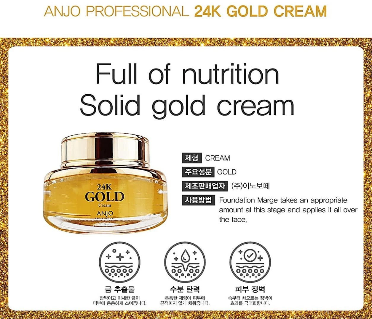 - Wrinkle-improving cosmetic with 99.9% pure 24K gold